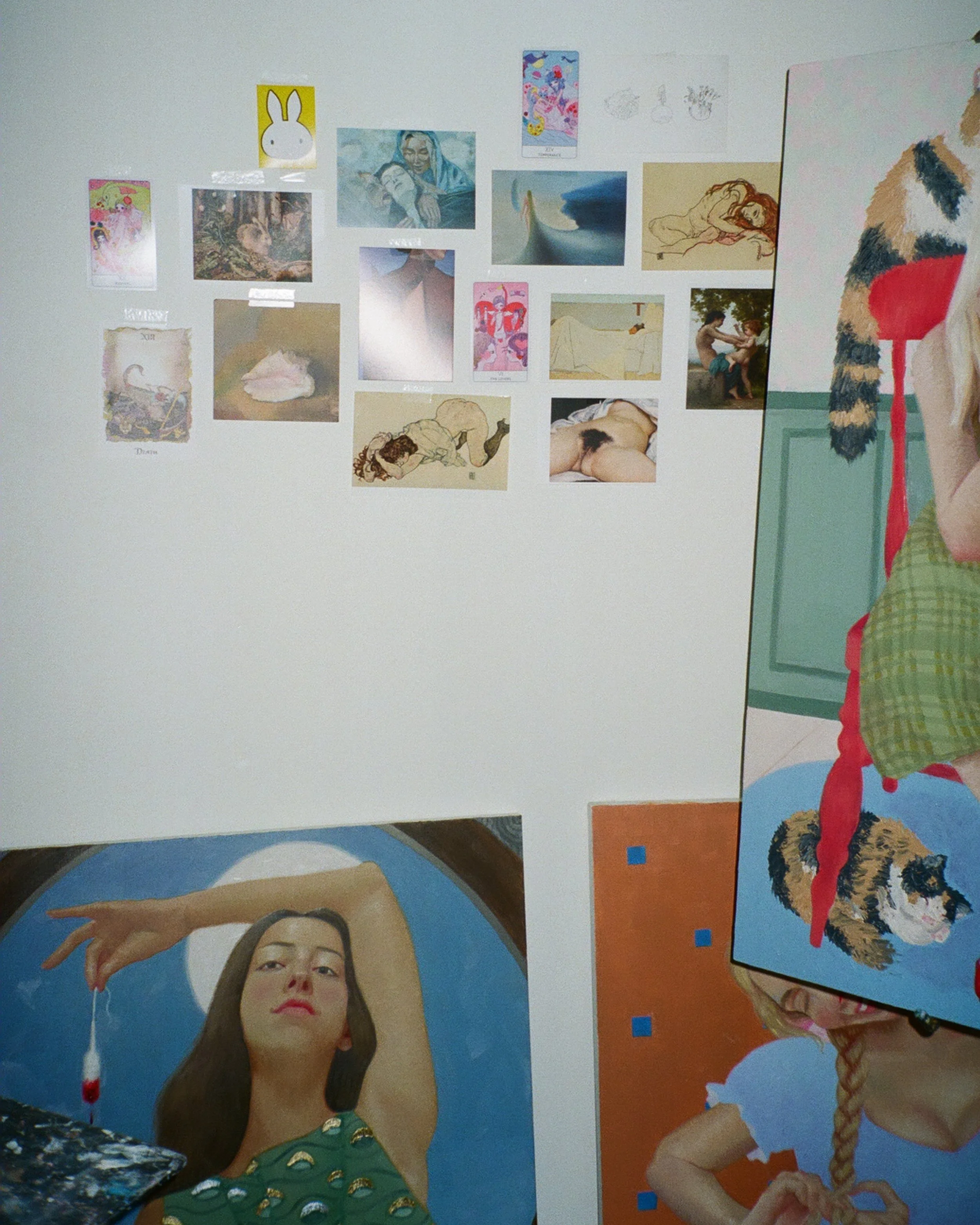 I have always had a strong connection and affinity towards my femininity. Being a girl was always attached to my identity since I was the only daughter, sister, niece, and granddaughter. This heavily influenced my interest in being highly focused and geared towards what it means to behave as a woman in this world and age. I paint what I see and experience, who I want to be and where I exist. The feminine personas in my paintings are mystics and transcendent, they connect to those before and beyond us through our shared experiences. Seeing the path that brought us from our foremothers and will end up bringing us to our descendants.